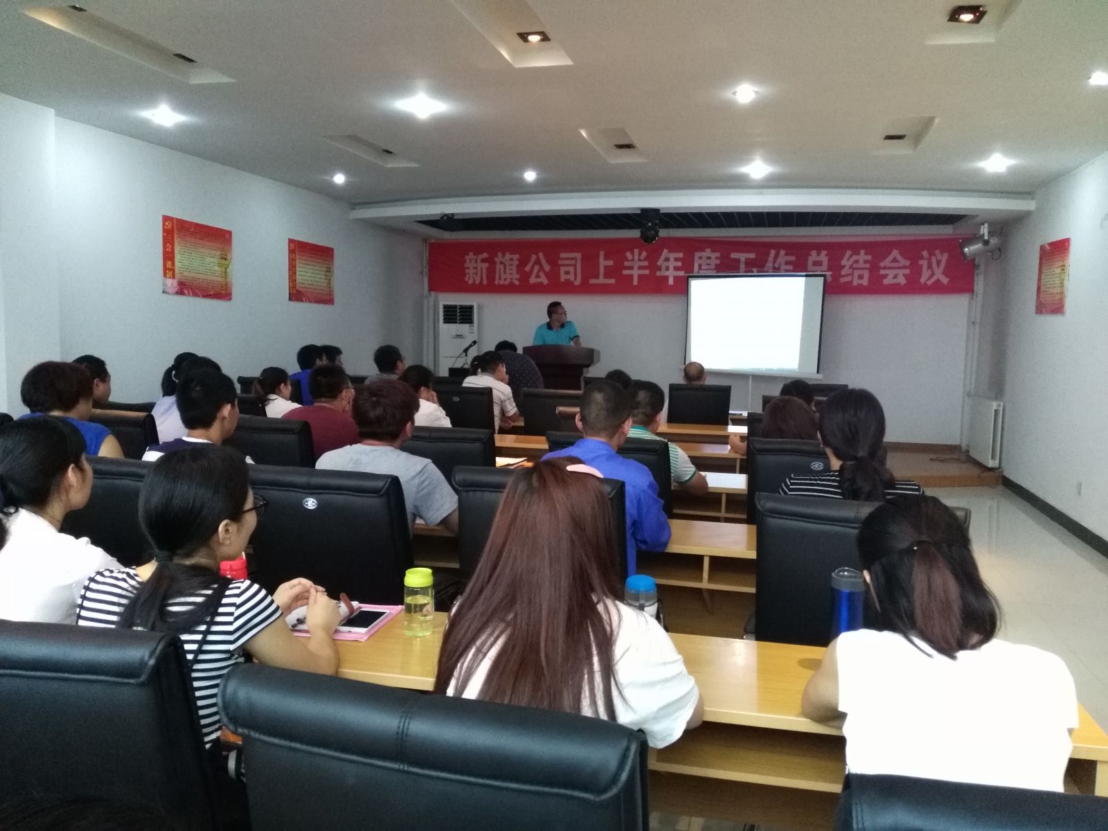 2016年7月15日在淮北新旗氨基酸有限公司三樓職工教室,公司召開了上半年度工作總結(jié)大會(huì)。公司總經(jīng)理袁鑠,副總經(jīng)理劉煥書、黃振宇、邱傳行,職能部門全體人員及車間班組長(zhǎng),共35人參加了會(huì)議。